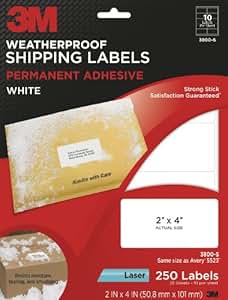Amazon.com : 3M Weatherproof Shipping Labels for Laser Printers, White, 2 x 4 Inches, 25 Sheets ...