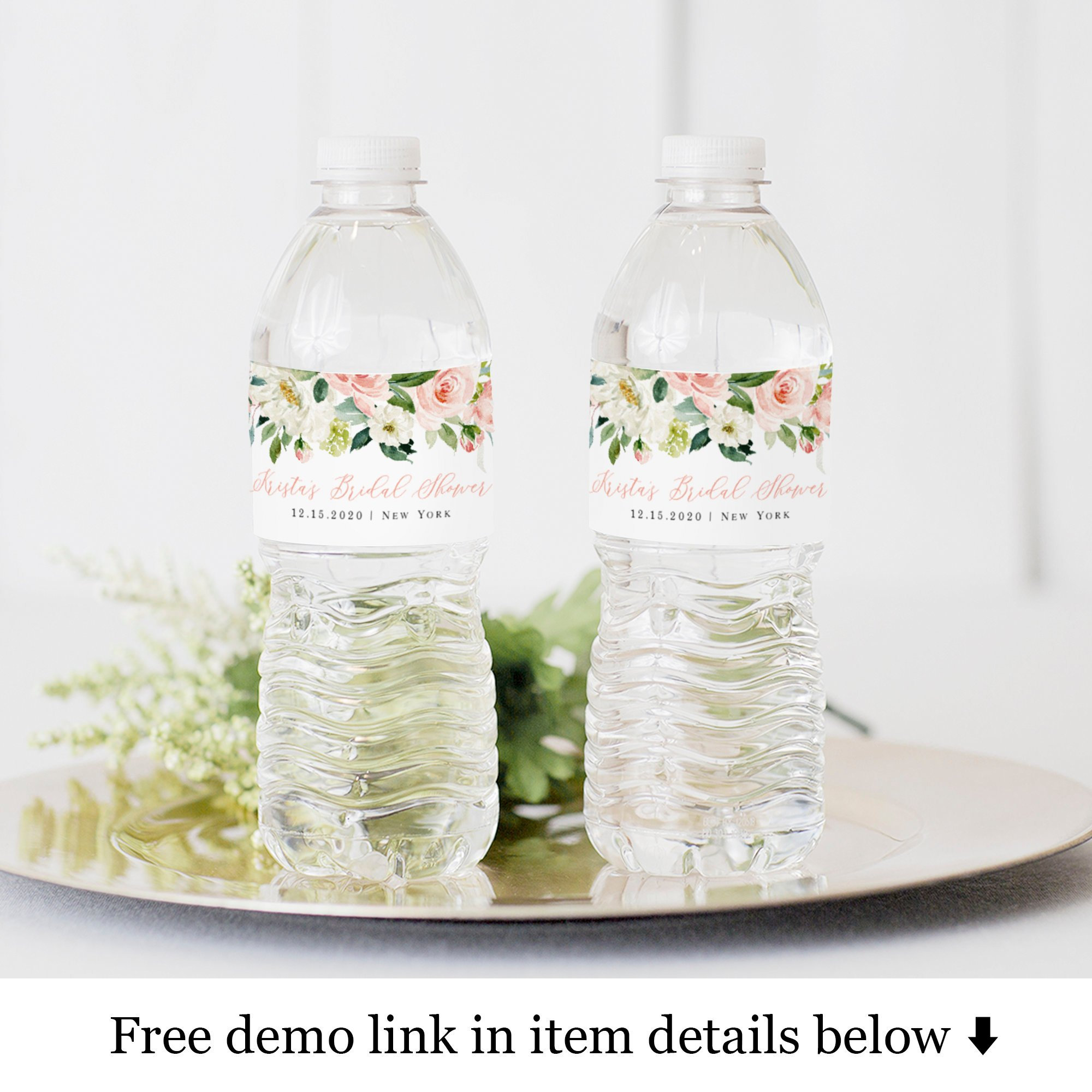 Printable Printed Wedding Water Bottle Labels - Girl birthday Party Rustic Pink Flower Custom Water Bottle Labels, Personalized