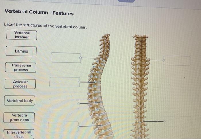 Vertebral Column Labeling Quiz - PurposeGames.com This is an online quiz called Vertebral Column Labeling There is a printable worksheet available for download here so you can take the quiz with pen and paper. Your Skills & Rank Total Points 0 Get started! Today's Rank -- 0 Today 's Points One of us! Game Points 7 You need to get 100% to score the 7 points available Actions